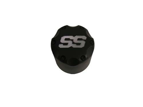 SS, FRONT SNAP-IN STYLE CENTER CAP. MATTE BLACK W/SILVER SS